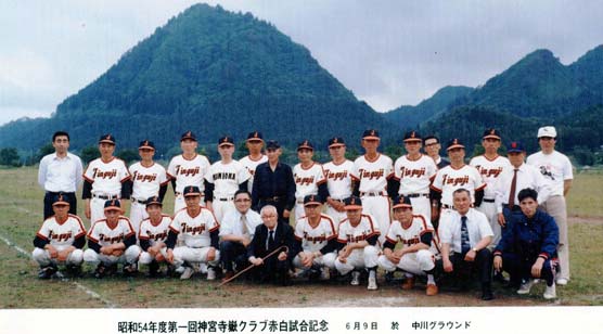 神岡町長(500歳野球大会を町おこし事業と捉え、大会育成に尽力)を囲み神宮
